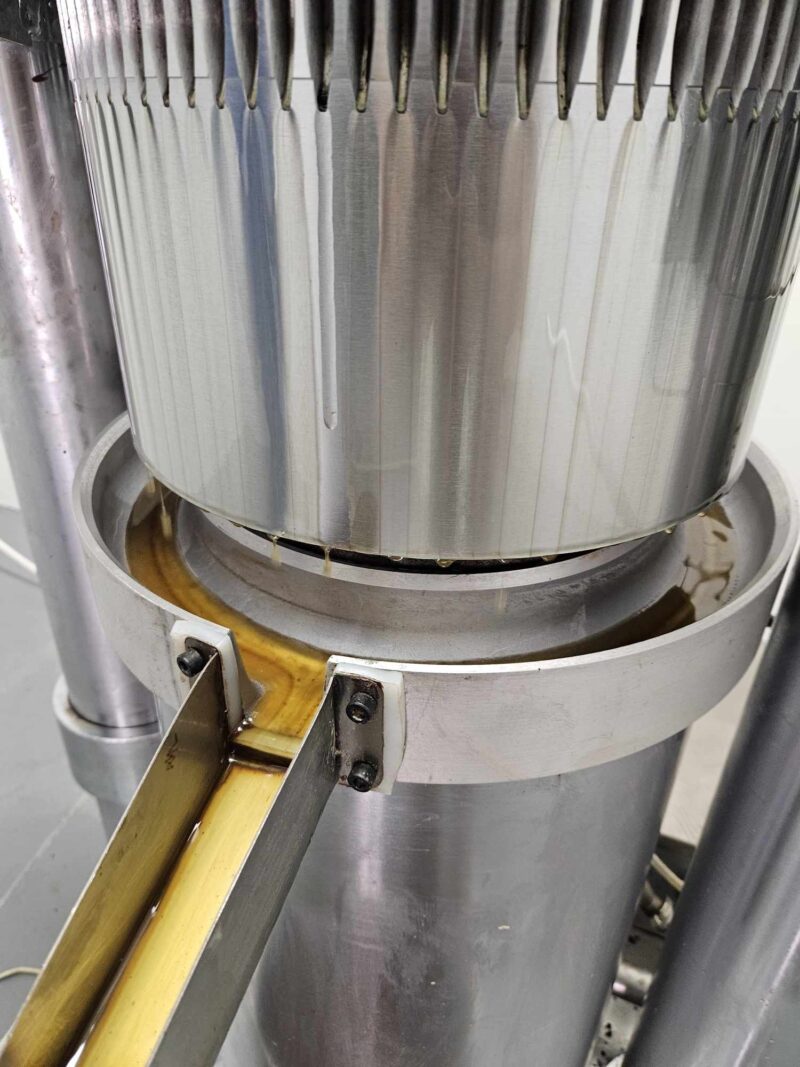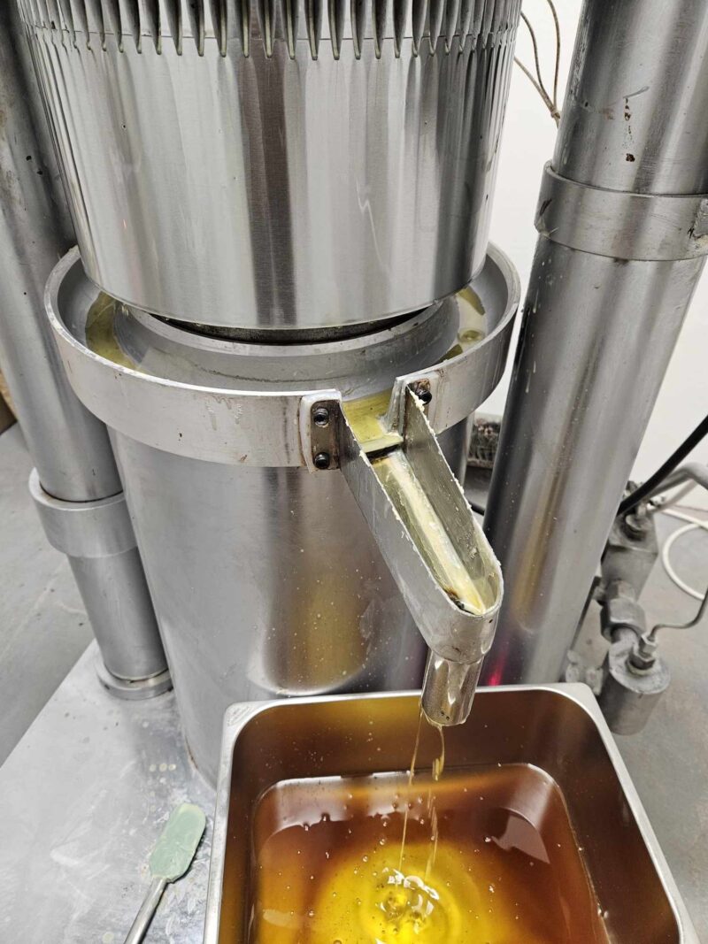 Under pressure of 60 Mpa – 600kg/cm2, compress the pulp and pure cocoa fat seeps through the dense material.